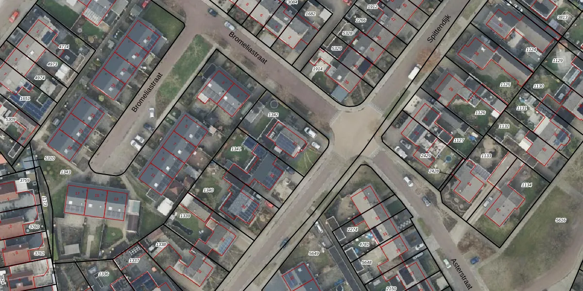Gebruik de zoekbalk of klik op een perceel voor informatie over de adressen binnen dit perceel.