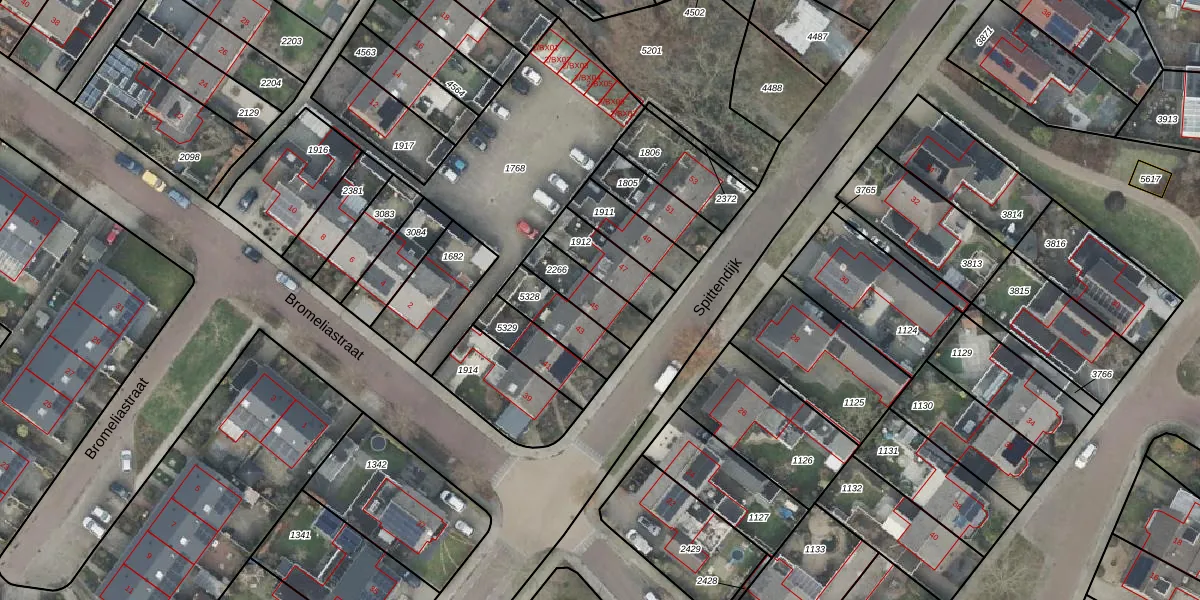 Het perceel waarop Spittendijk 45 staat heeft een oppervlakte van 147 m². Dit is een middelgroot perceel. De perceeloppervlakte wordt geregistreerd door het Kadaster. Gedetailleerde informatie over de maten van dit perceel kunt u vinden in het rapport Kadastrale kaart met maatvoering van Spittendijk 45.