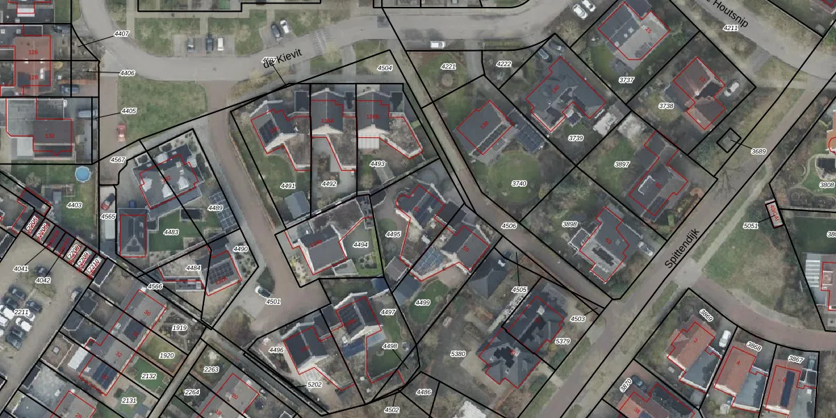 Het perceel waarop Spittendijk 61 staat heeft een oppervlakte van 387 m². Dit is een groot perceel. De perceeloppervlakte wordt geregistreerd door het Kadaster. Gedetailleerde informatie over de maten van dit perceel kunt u vinden in het rapport Kadastrale kaart met maatvoering van Spittendijk 61.