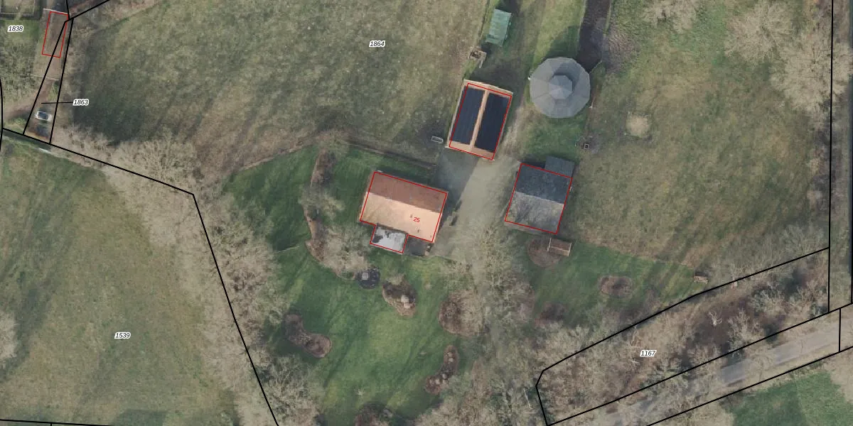 Stroothuizerweg 25 is gelegen op kadastraal perceel DNK00P1864. Deze kadastrale aanduiding is uniek en wordt gebruikt door het Kadaster om eigendomsrechten en andere zakelijke rechten vast te leggen. Het perceel maakt onderdeel uit van de kadastrale gemeente Denekamp.