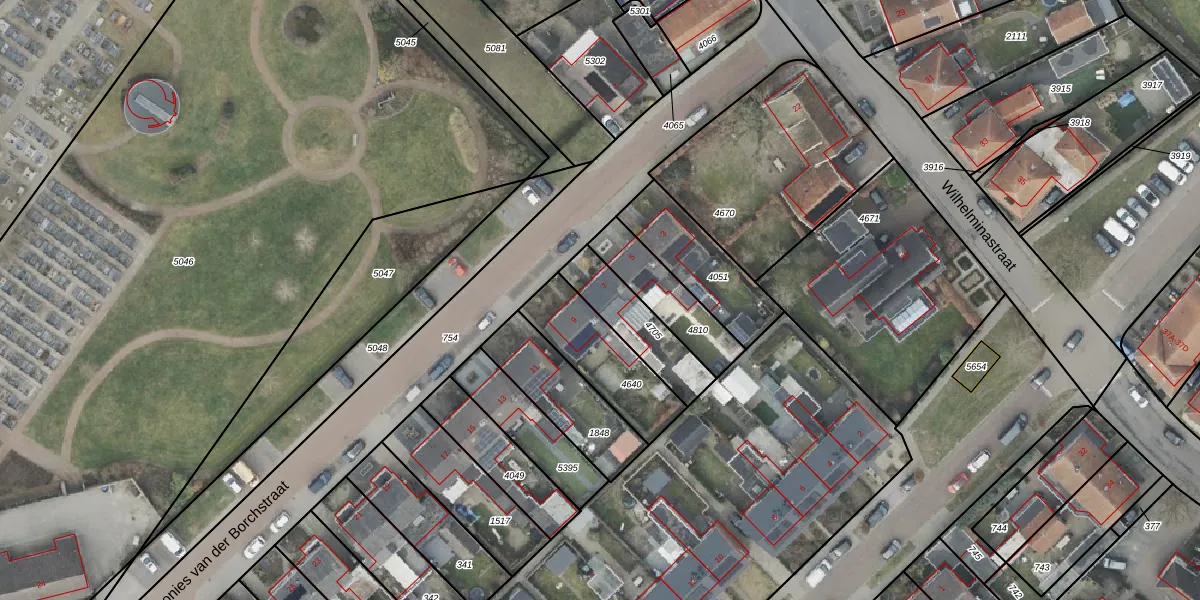 Gebruik de zoekbalk of klik op een perceel voor informatie over de adressen binnen dit perceel.