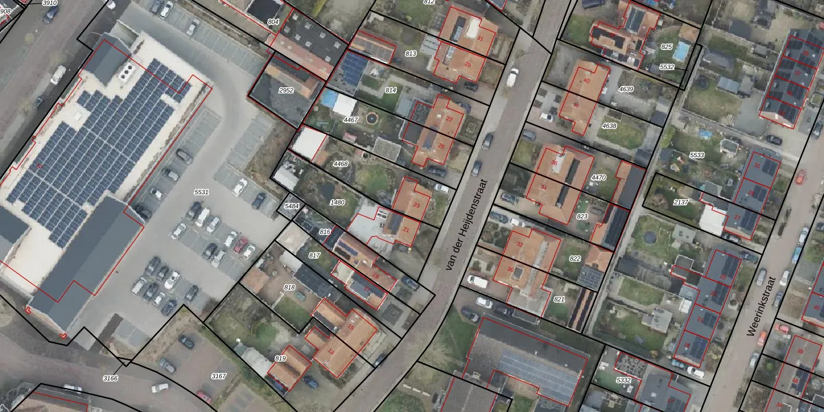 Het perceel waarop van der Heijdenstraat 23 staat heeft een oppervlakte van 390 m². Dit is een groot perceel. De perceeloppervlakte wordt geregistreerd door het Kadaster. Gedetailleerde informatie over de maten van dit perceel kunt u vinden in het rapport Kadastrale kaart met maatvoering van van der Heijdenstraat 23.
