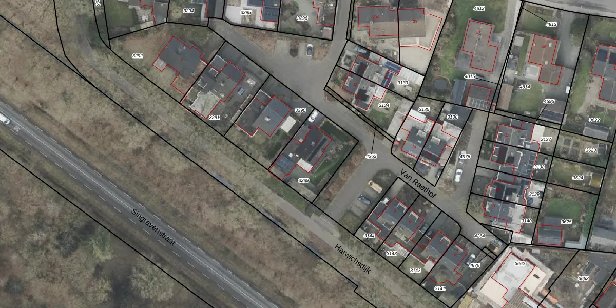 Het perceel waarop Van Raethof 4 staat heeft een oppervlakte van 452 m². Dit is een groot perceel. De perceeloppervlakte wordt geregistreerd door het Kadaster. Gedetailleerde informatie over de maten van dit perceel kunt u vinden in het rapport Kadastrale kaart met maatvoering van Van Raethof 4.