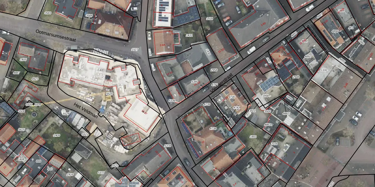 Vledderstraat 1-A is gelegen op kadastraal perceel DNK00O5340. Deze kadastrale aanduiding is uniek en wordt gebruikt door het Kadaster om eigendomsrechten en andere zakelijke rechten vast te leggen. Het perceel maakt onderdeel uit van de kadastrale gemeente Denekamp.