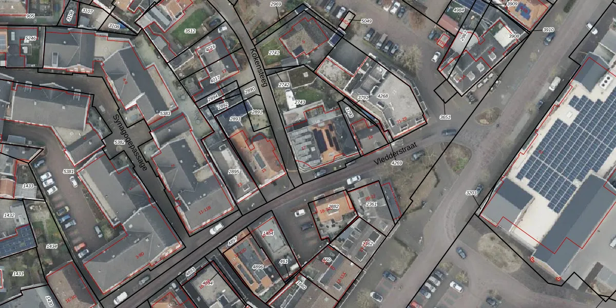 Vledderstraat 17 is gelegen op kadastraal perceel DNK00O2743. Deze kadastrale aanduiding is uniek en wordt gebruikt door het Kadaster om eigendomsrechten en andere zakelijke rechten vast te leggen. Het perceel maakt onderdeel uit van de kadastrale gemeente Denekamp.