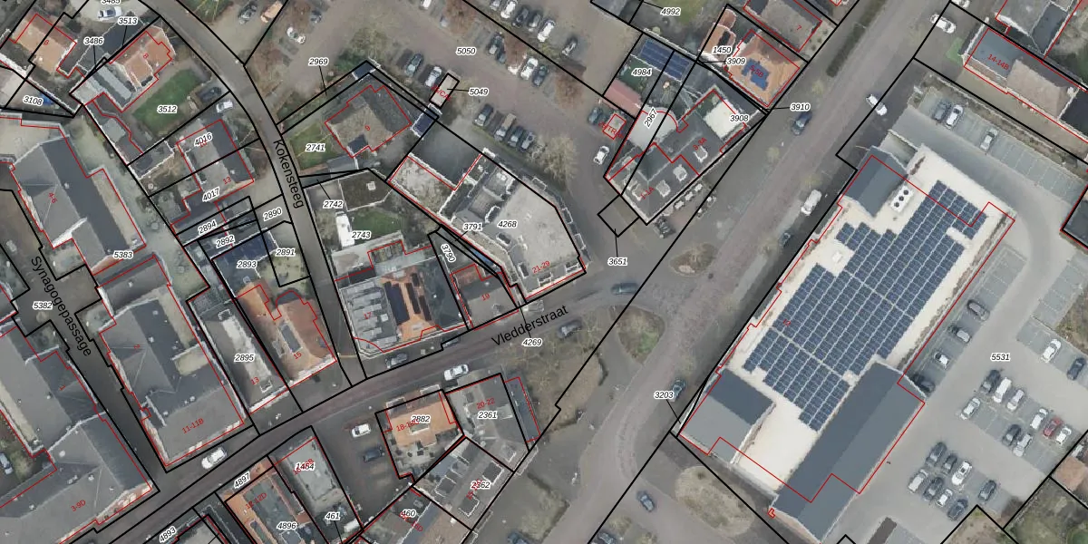 Vledderstraat 21 is gelegen op kadastraal perceel DNK00O4268. Deze kadastrale aanduiding is uniek en wordt gebruikt door het Kadaster om eigendomsrechten en andere zakelijke rechten vast te leggen. Het perceel maakt onderdeel uit van de kadastrale gemeente Denekamp.