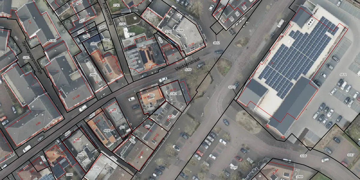 Vledderstraat 22 is gelegen op kadastraal perceel DNK00O2361. Deze kadastrale aanduiding is uniek en wordt gebruikt door het Kadaster om eigendomsrechten en andere zakelijke rechten vast te leggen. Het perceel maakt onderdeel uit van de kadastrale gemeente Denekamp.