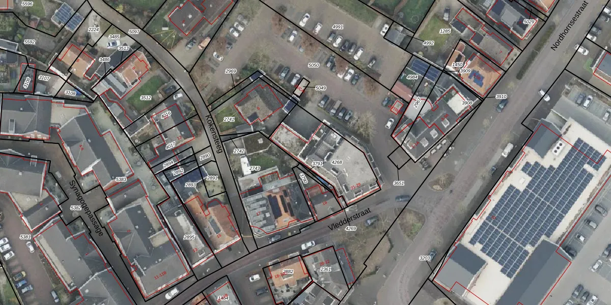Vledderstraat 27 is gelegen op kadastraal perceel DNK00O4268. Deze kadastrale aanduiding is uniek en wordt gebruikt door het Kadaster om eigendomsrechten en andere zakelijke rechten vast te leggen. Het perceel maakt onderdeel uit van de kadastrale gemeente Denekamp.