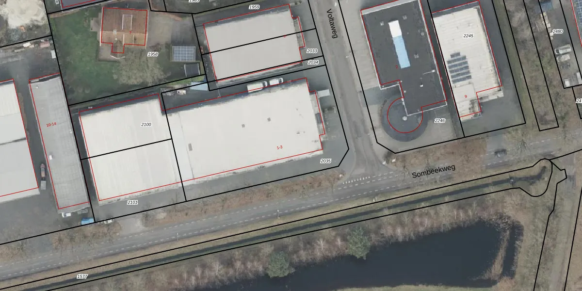 Het perceel waarop Voltaweg 1 staat heeft een oppervlakte van 2075 m². Dit is een zeer groot perceel. De perceeloppervlakte wordt geregistreerd door het Kadaster. Gedetailleerde informatie over de maten van dit perceel kunt u vinden in het rapport Kadastrale kaart met maatvoering van Voltaweg 1.