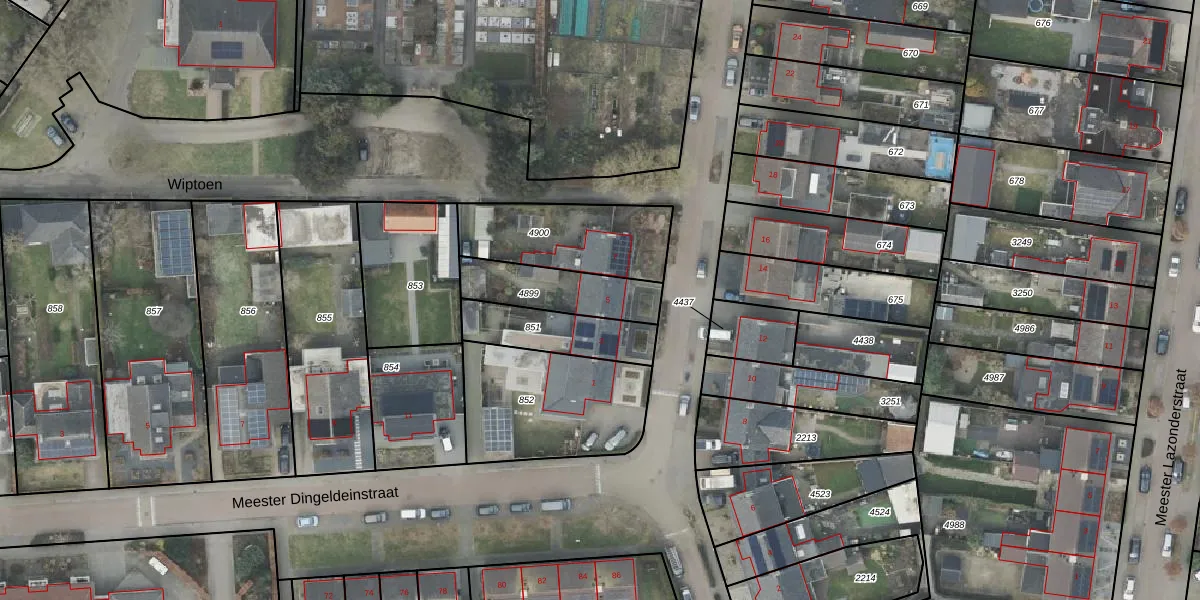 Gebruik de zoekbalk of klik op een perceel voor informatie over de adressen binnen dit perceel.