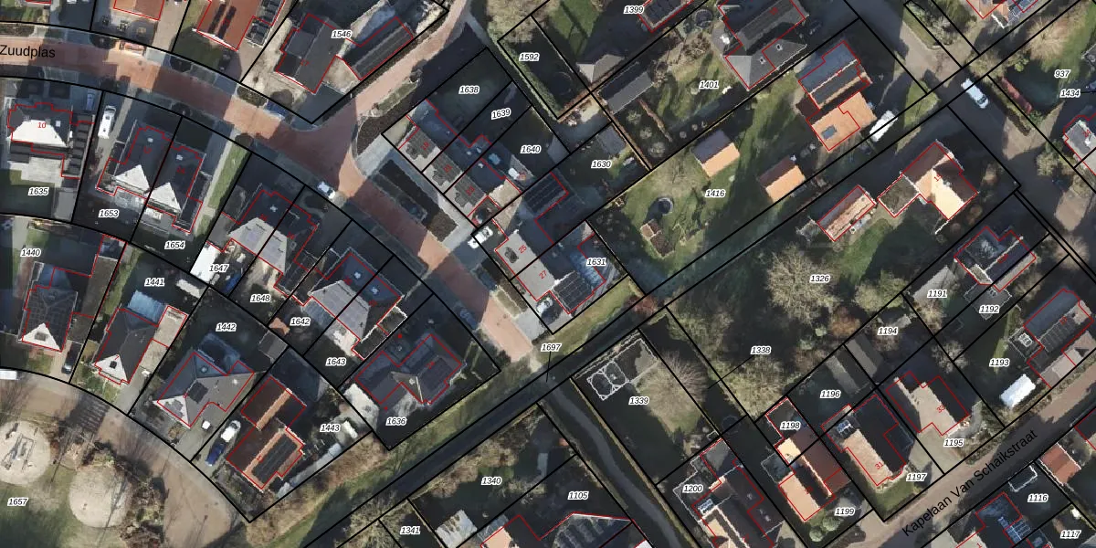 Gebruik de zoekbalk of klik op een perceel voor informatie over de adressen binnen dit perceel.