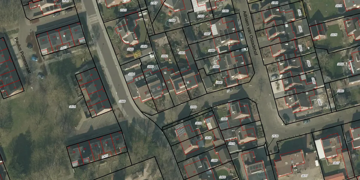 Gebruik de zoekbalk of klik op een perceel voor informatie over de adressen binnen dit perceel.