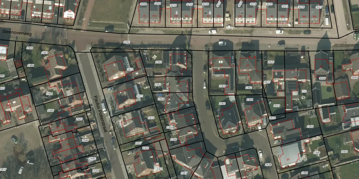 Gebruik de zoekbalk of klik op een perceel voor informatie over de adressen binnen dit perceel.
