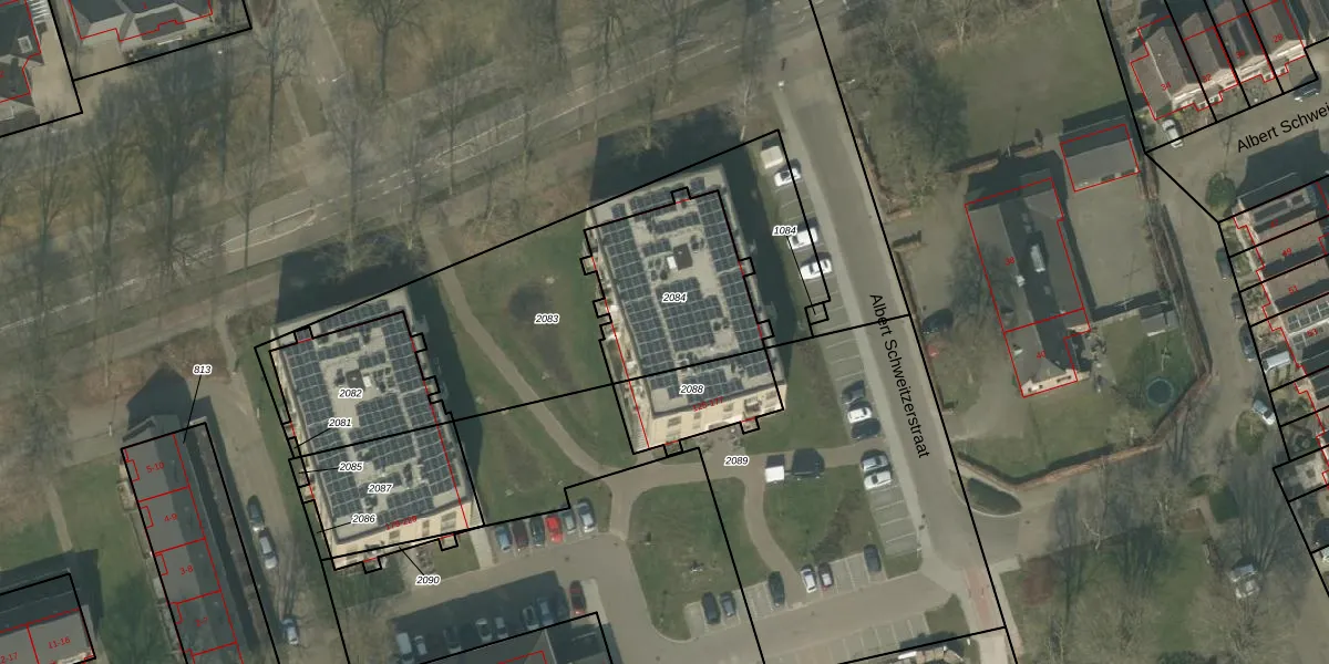 Albert Schweitzerstraat 165 is gelegen op kadastraal perceel DNE00K2084. Deze kadastrale aanduiding is uniek en wordt gebruikt door het Kadaster om eigendomsrechten en andere zakelijke rechten vast te leggen. Het perceel maakt onderdeel uit van de kadastrale gemeente Deurne.