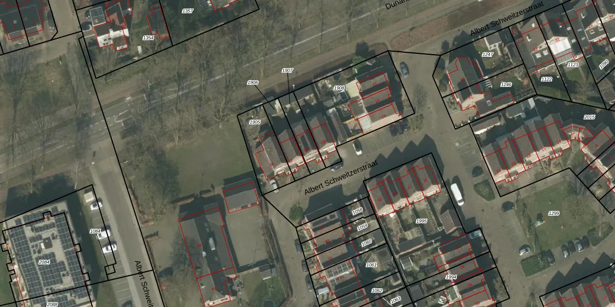 Albert Schweitzerstraat 30 is gelegen op kadastraal perceel DNE00K1907. Deze kadastrale aanduiding is uniek en wordt gebruikt door het Kadaster om eigendomsrechten en andere zakelijke rechten vast te leggen. Het perceel maakt onderdeel uit van de kadastrale gemeente Deurne.