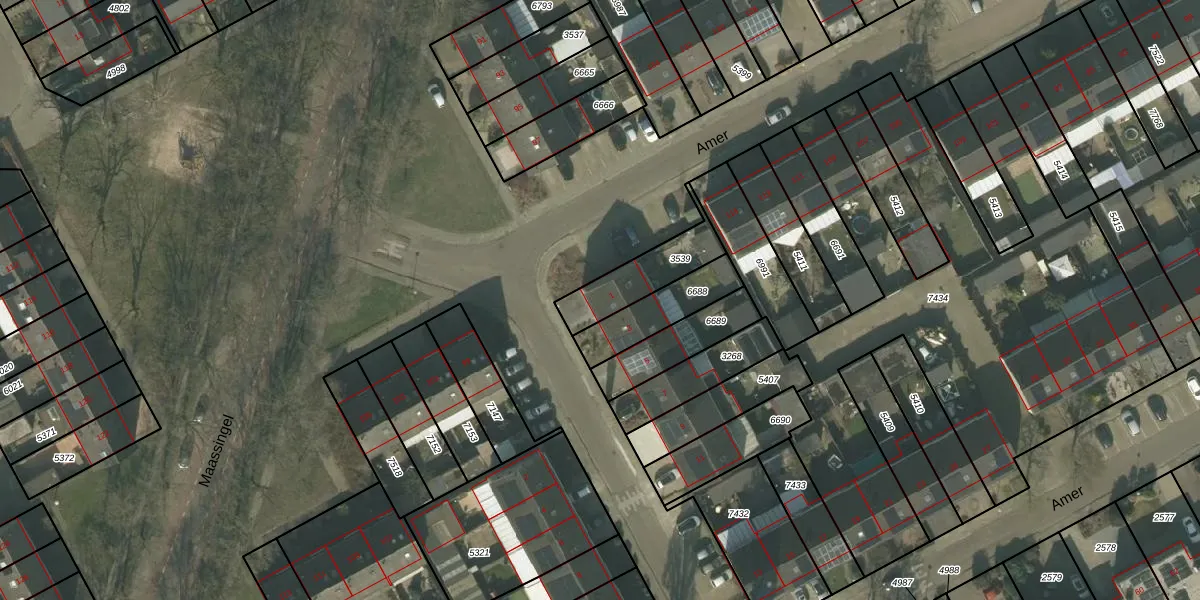 Het perceel waarop Amer 1 staat heeft een oppervlakte van 194 m². Dit is een middelgroot perceel. De perceeloppervlakte wordt geregistreerd door het Kadaster. Gedetailleerde informatie over de maten van dit perceel kunt u vinden in het rapport Kadastrale kaart met maatvoering van Amer 1.