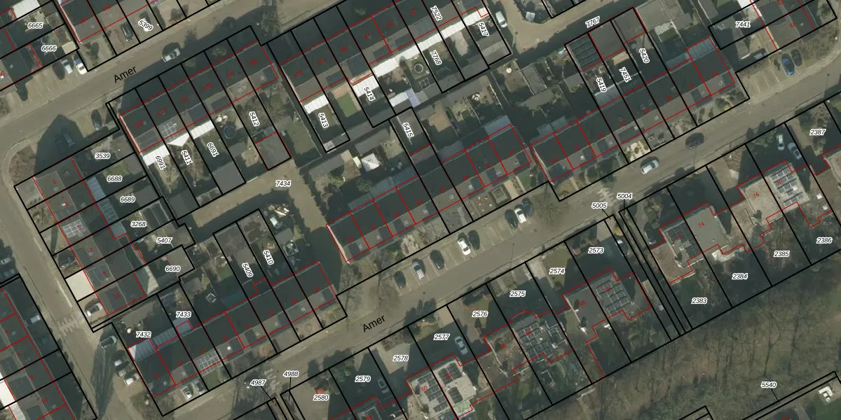 Het perceel waarop Amer 35 staat heeft een oppervlakte van 2395 m². Dit is een zeer groot perceel. De perceeloppervlakte wordt geregistreerd door het Kadaster. Gedetailleerde informatie over de maten van dit perceel kunt u vinden in het rapport Kadastrale kaart met maatvoering van Amer 35.