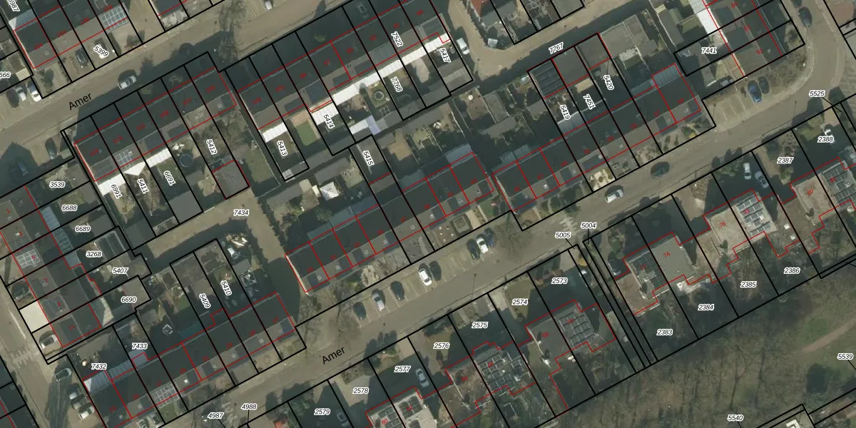 Het perceel waarop Amer 39 staat heeft een oppervlakte van 4378 m². Dit is een zeer groot perceel. De perceeloppervlakte wordt geregistreerd door het Kadaster. Gedetailleerde informatie over de maten van dit perceel kunt u vinden in het rapport Kadastrale kaart met maatvoering van Amer 39.