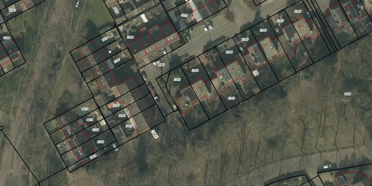 Het perceel waarop Amer 40 staat heeft een oppervlakte van 382 m². Dit is een groot perceel. De perceeloppervlakte wordt geregistreerd door het Kadaster. Gedetailleerde informatie over de maten van dit perceel kunt u vinden in het rapport Kadastrale kaart met maatvoering van Amer 40.