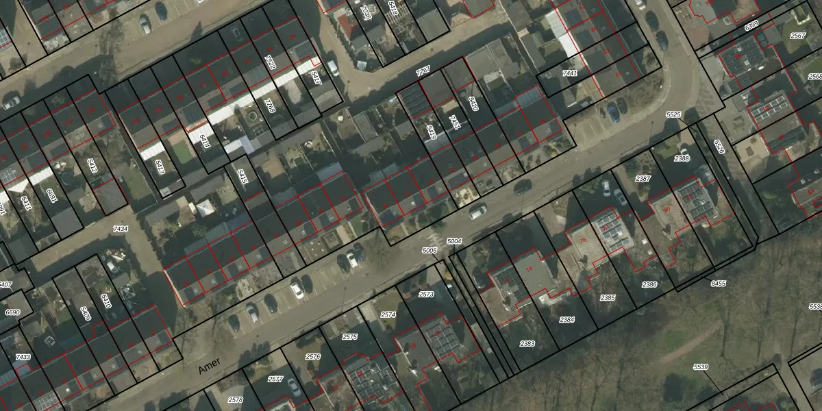 Het perceel waarop Amer 47 staat heeft een oppervlakte van 4378 m². Dit is een zeer groot perceel. De perceeloppervlakte wordt geregistreerd door het Kadaster. Gedetailleerde informatie over de maten van dit perceel kunt u vinden in het rapport Kadastrale kaart met maatvoering van Amer 47.