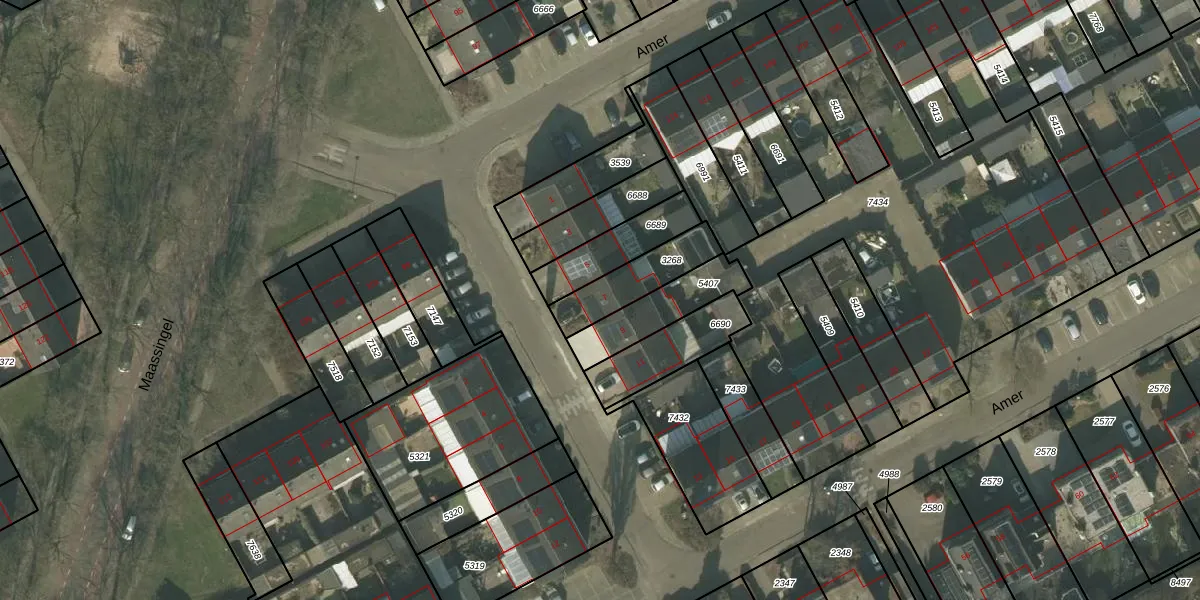 Het perceel waarop Amer 7 staat heeft een oppervlakte van 185 m². Dit is een middelgroot perceel. De perceeloppervlakte wordt geregistreerd door het Kadaster. Gedetailleerde informatie over de maten van dit perceel kunt u vinden in het rapport Kadastrale kaart met maatvoering van Amer 7.