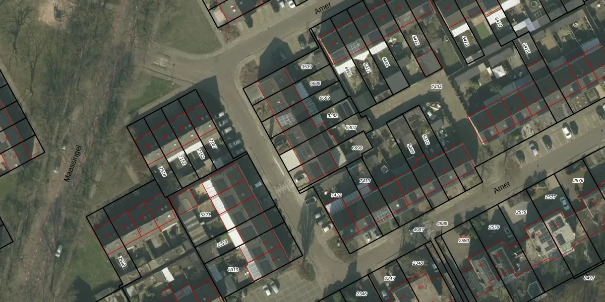 Het perceel waarop Amer 9 staat heeft een oppervlakte van 196 m². Dit is een middelgroot perceel. De perceeloppervlakte wordt geregistreerd door het Kadaster. Gedetailleerde informatie over de maten van dit perceel kunt u vinden in het rapport Kadastrale kaart met maatvoering van Amer 9.