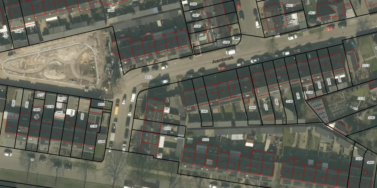 Het perceel waarop Arenbroek 14 staat heeft een oppervlakte van 4421 m². Dit is een zeer groot perceel. De perceeloppervlakte wordt geregistreerd door het Kadaster. Gedetailleerde informatie over de maten van dit perceel kunt u vinden in het rapport Kadastrale kaart met maatvoering van Arenbroek 14.