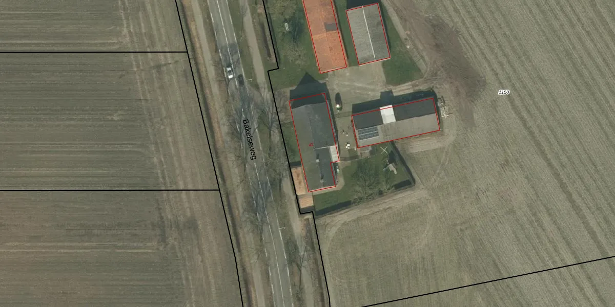 Het perceel waarop Bakelseweg 42 staat heeft een oppervlakte van 1,5 ha. Dit is een zeer groot perceel. De perceeloppervlakte wordt geregistreerd door het Kadaster. Gedetailleerde informatie over de maten van dit perceel kunt u vinden in het rapport Kadastrale kaart met maatvoering van Bakelseweg 42.