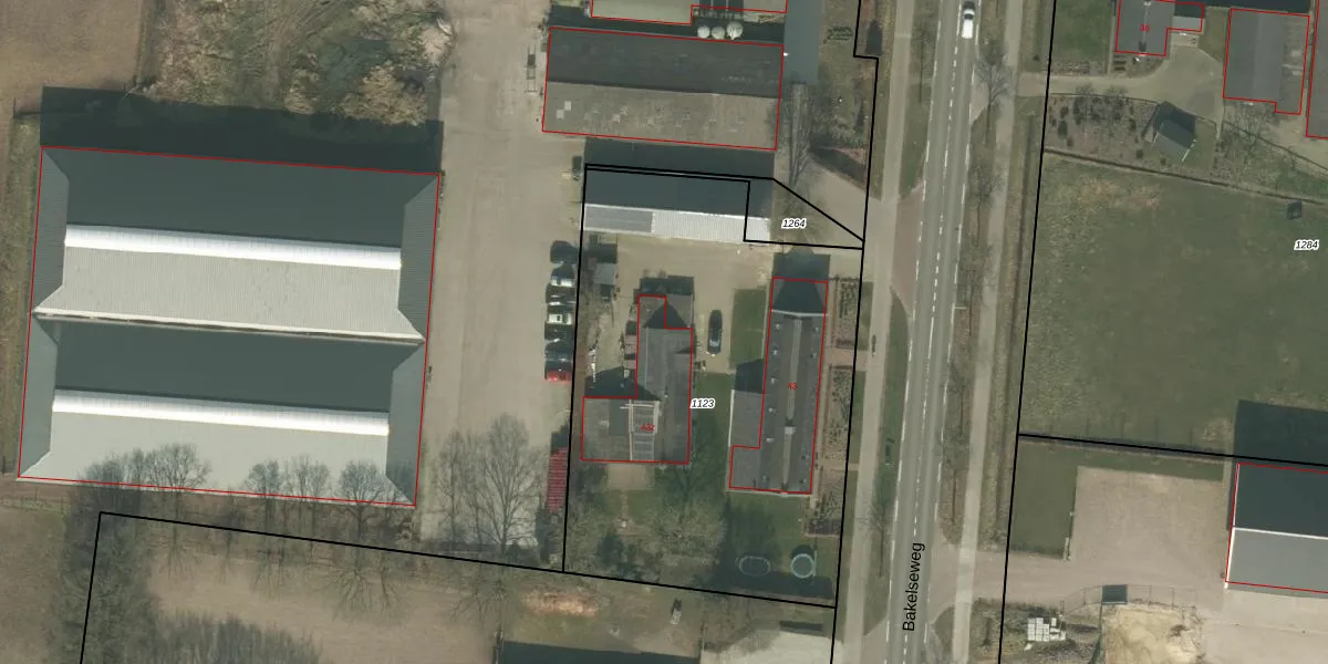 Het perceel waarop Bakelseweg 43-z staat heeft een oppervlakte van 2445 m². Dit is een zeer groot perceel. De perceeloppervlakte wordt geregistreerd door het Kadaster. Gedetailleerde informatie over de maten van dit perceel kunt u vinden in het rapport Kadastrale kaart met maatvoering van Bakelseweg 43-z.