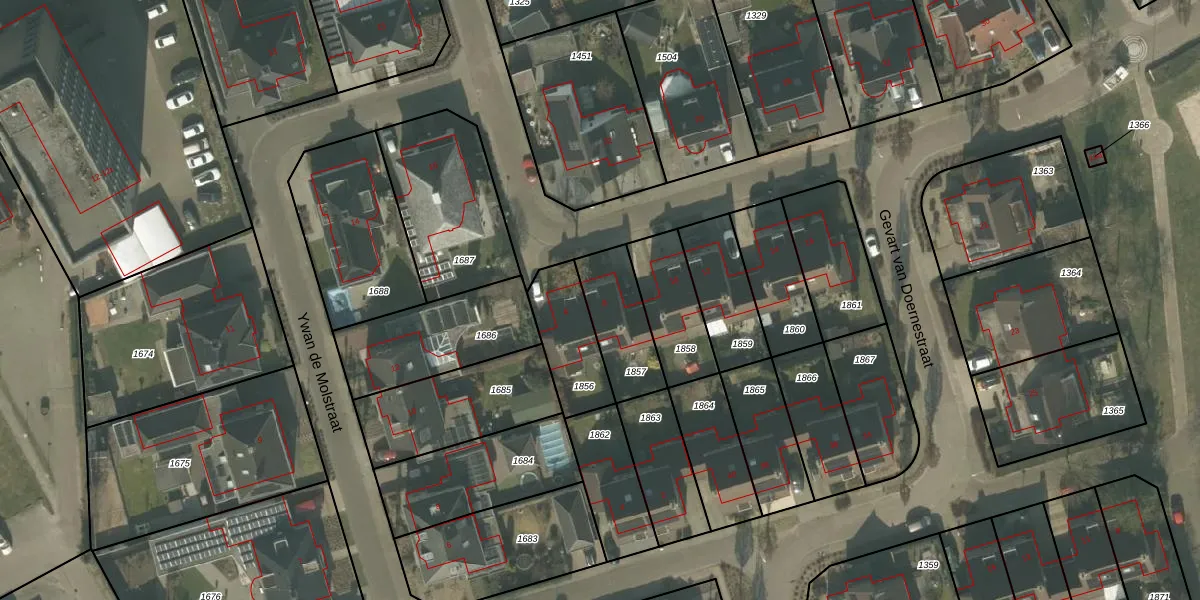Gebruik de zoekbalk of klik op een perceel voor informatie over de adressen binnen dit perceel.