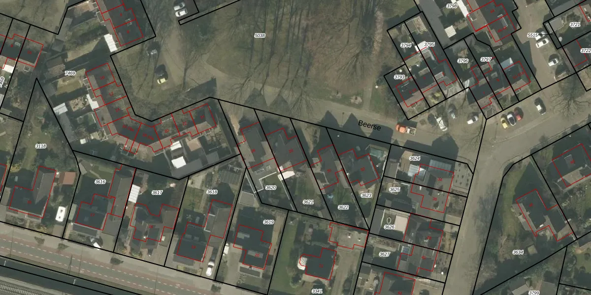 Het perceel waarop Beerse 28 staat heeft een oppervlakte van 378 m². Dit is een groot perceel. De perceeloppervlakte wordt geregistreerd door het Kadaster. Gedetailleerde informatie over de maten van dit perceel kunt u vinden in het rapport Kadastrale kaart met maatvoering van Beerse 28.