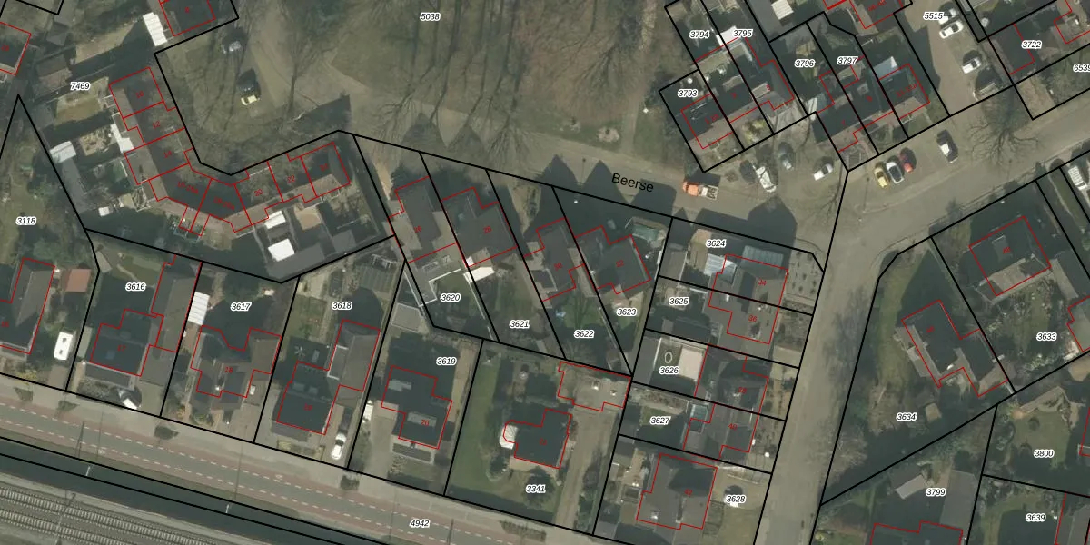 Het perceel waarop Beerse 30 staat heeft een oppervlakte van 379 m². Dit is een groot perceel. De perceeloppervlakte wordt geregistreerd door het Kadaster. Gedetailleerde informatie over de maten van dit perceel kunt u vinden in het rapport Kadastrale kaart met maatvoering van Beerse 30.