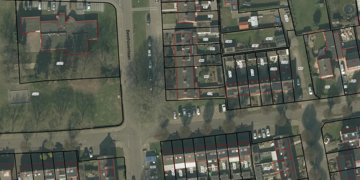 Het perceel waarop Beethovenlaan 22 staat heeft een oppervlakte van 213 m². Dit is een middelgroot perceel. De perceeloppervlakte wordt geregistreerd door het Kadaster. Gedetailleerde informatie over de maten van dit perceel kunt u vinden in het rapport Kadastrale kaart met maatvoering van Beethovenlaan 22.