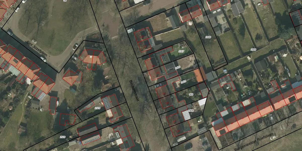 Gebruik de zoekbalk of klik op een perceel voor informatie over de adressen binnen dit perceel.