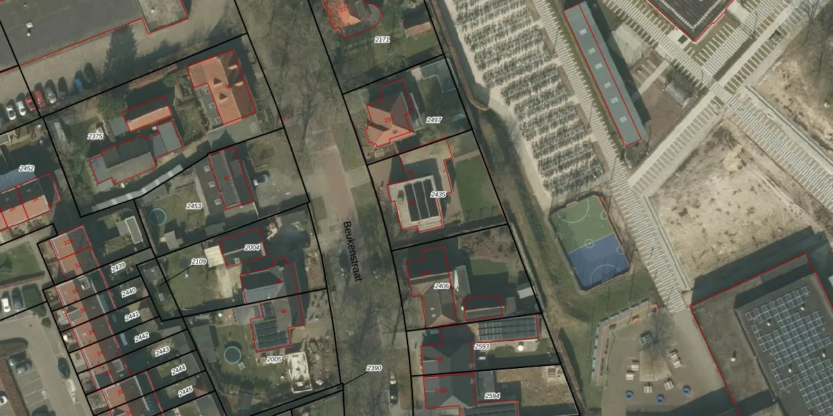Beukenstraat 241 is gelegen op kadastraal perceel DNE00F2435. Deze kadastrale aanduiding is uniek en wordt gebruikt door het Kadaster om eigendomsrechten en andere zakelijke rechten vast te leggen. Het perceel maakt onderdeel uit van de kadastrale gemeente Deurne.
