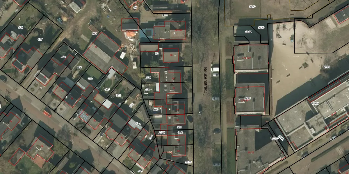 Gebruik de zoekbalk of klik op een perceel voor informatie over de adressen binnen dit perceel.