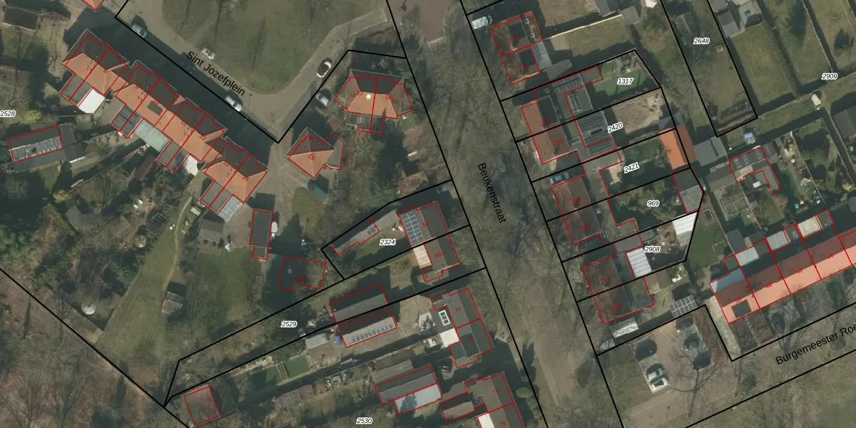 Gebruik de zoekbalk of klik op een perceel voor informatie over de adressen binnen dit perceel.