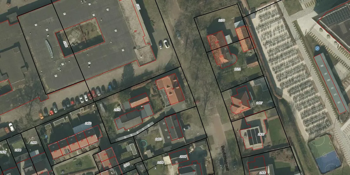 Beukenstraat 90 is gelegen op kadastraal perceel DNE00F2375. Deze kadastrale aanduiding is uniek en wordt gebruikt door het Kadaster om eigendomsrechten en andere zakelijke rechten vast te leggen. Het perceel maakt onderdeel uit van de kadastrale gemeente Deurne.