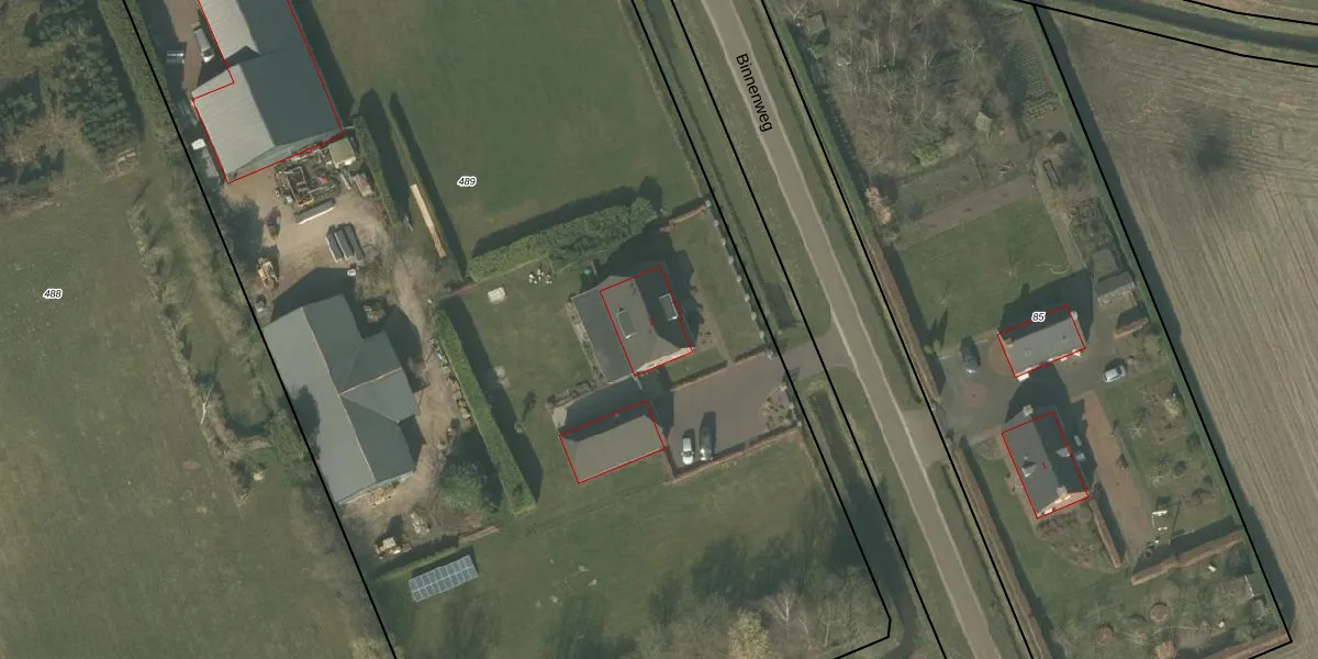 Het perceel waarop Binnenweg 2 staat heeft een oppervlakte van 1,1 ha. Dit is een zeer groot perceel. De perceeloppervlakte wordt geregistreerd door het Kadaster. Gedetailleerde informatie over de maten van dit perceel kunt u vinden in het rapport Kadastrale kaart met maatvoering van Binnenweg 2.