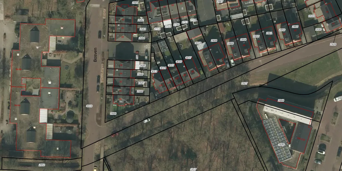 Het perceel waarop Bosven 102 staat heeft een oppervlakte van 155 m². Dit is een middelgroot perceel. De perceeloppervlakte wordt geregistreerd door het Kadaster. Gedetailleerde informatie over de maten van dit perceel kunt u vinden in het rapport Kadastrale kaart met maatvoering van Bosven 102.