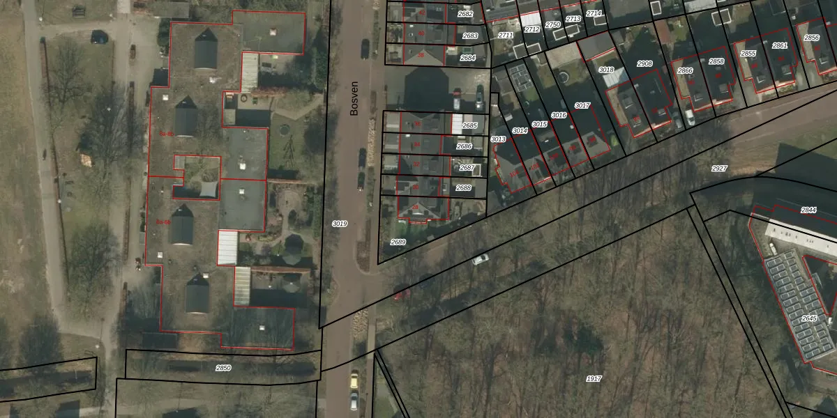 Gebruik de zoekbalk of klik op een perceel voor informatie over de adressen binnen dit perceel.