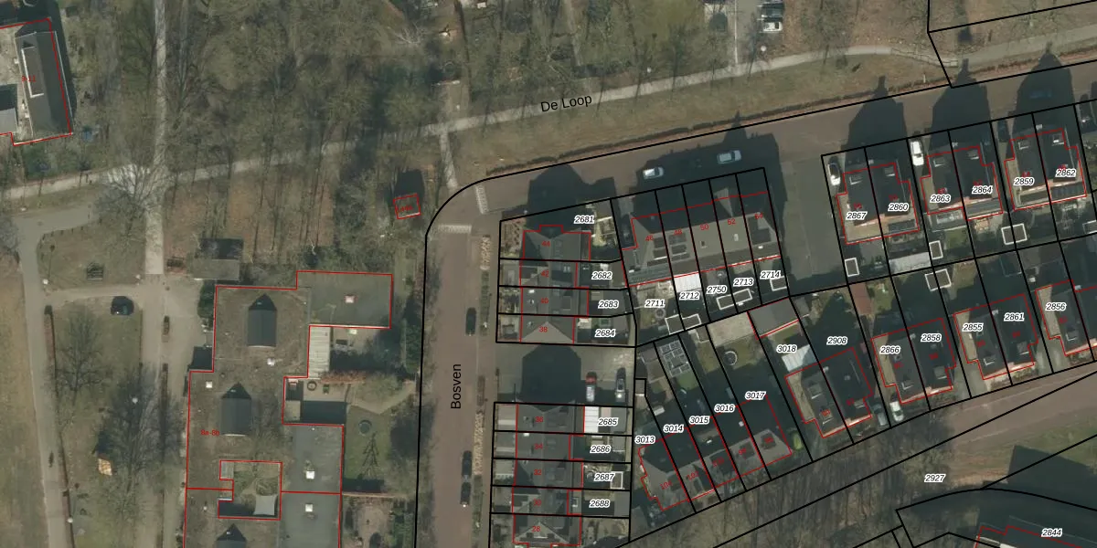 Gebruik de zoekbalk of klik op een perceel voor informatie over de adressen binnen dit perceel.