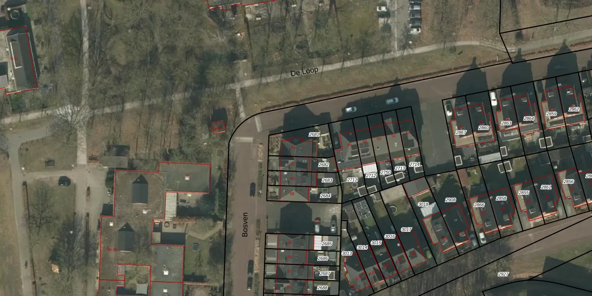 Gebruik de zoekbalk of klik op een perceel voor informatie over de adressen binnen dit perceel.