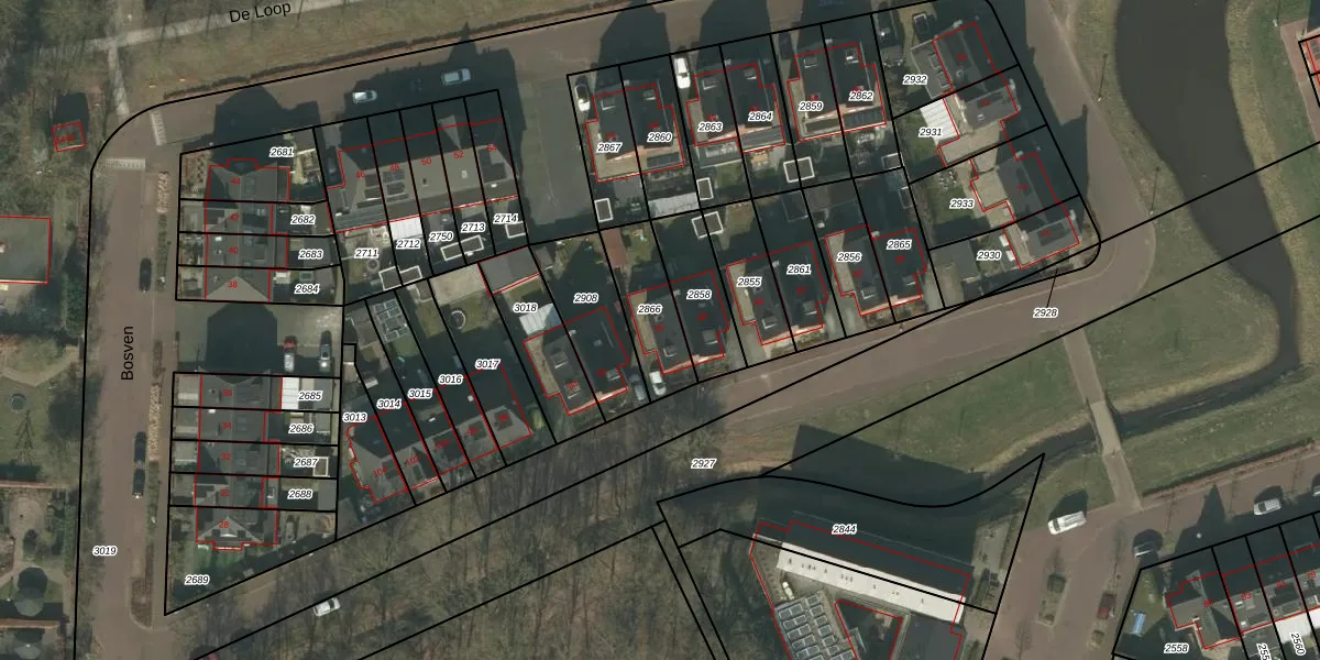 Gebruik de zoekbalk of klik op een perceel voor informatie over de adressen binnen dit perceel.