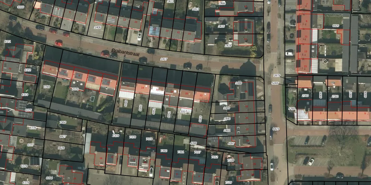 Het perceel waarop Brabantstraat 20 staat heeft een oppervlakte van 269 m². Dit is een middelgroot perceel. De perceeloppervlakte wordt geregistreerd door het Kadaster. Gedetailleerde informatie over de maten van dit perceel kunt u vinden in het rapport Kadastrale kaart met maatvoering van Brabantstraat 20.