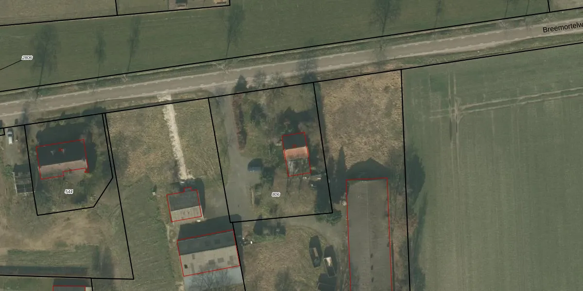 Breemortelweg 22 is gelegen op kadastraal perceel DNE00S806. Deze kadastrale aanduiding is uniek en wordt gebruikt door het Kadaster om eigendomsrechten en andere zakelijke rechten vast te leggen. Het perceel maakt onderdeel uit van de kadastrale gemeente Deurne.