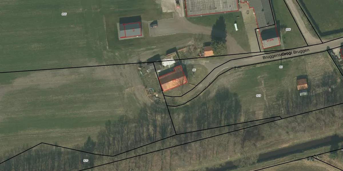 Bruggenseweg 17-a is gelegen op kadastraal perceel DNE00V86. Deze kadastrale aanduiding is uniek en wordt gebruikt door het Kadaster om eigendomsrechten en andere zakelijke rechten vast te leggen. Het perceel maakt onderdeel uit van de kadastrale gemeente Deurne.