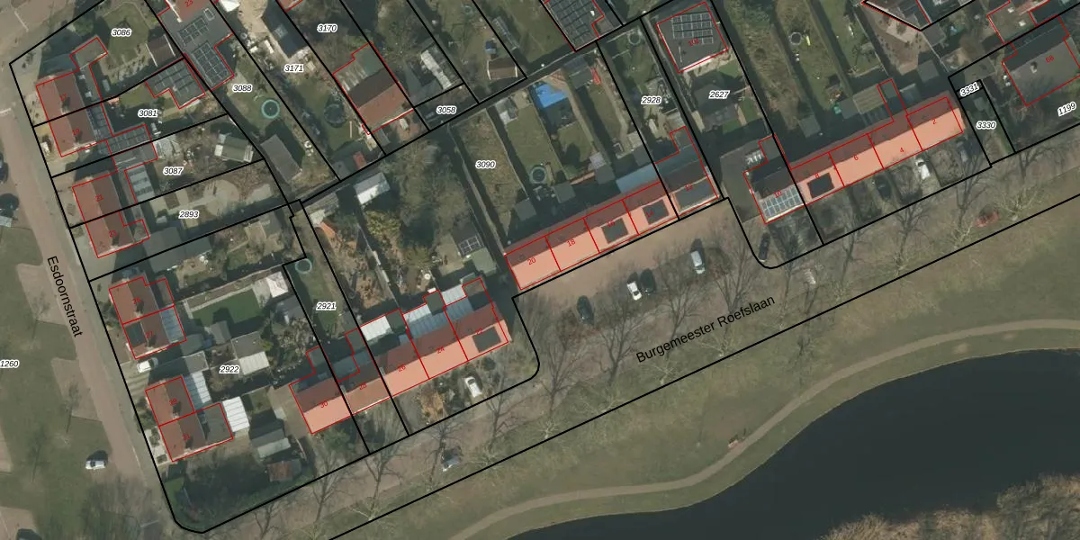 Het perceel waarop Burgemeester Roefslaan 20 staat heeft een oppervlakte van 3144 m². Dit is een zeer groot perceel. De perceeloppervlakte wordt geregistreerd door het Kadaster. Gedetailleerde informatie over de maten van dit perceel kunt u vinden in het rapport Kadastrale kaart met maatvoering van Burgemeester Roefslaan 20.