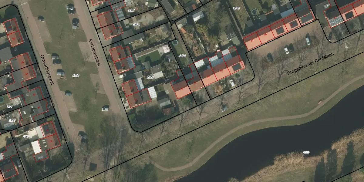Het perceel waarop Burgemeester Roefslaan 30 staat heeft een oppervlakte van 1848 m². Dit is een zeer groot perceel. De perceeloppervlakte wordt geregistreerd door het Kadaster. Gedetailleerde informatie over de maten van dit perceel kunt u vinden in het rapport Kadastrale kaart met maatvoering van Burgemeester Roefslaan 30.