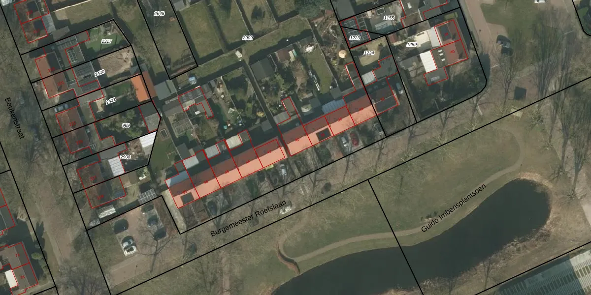 Het perceel waarop Burgemeester Roefslaan 40 staat heeft een oppervlakte van 9004 m². Dit is een zeer groot perceel. De perceeloppervlakte wordt geregistreerd door het Kadaster. Gedetailleerde informatie over de maten van dit perceel kunt u vinden in het rapport Kadastrale kaart met maatvoering van Burgemeester Roefslaan 40.